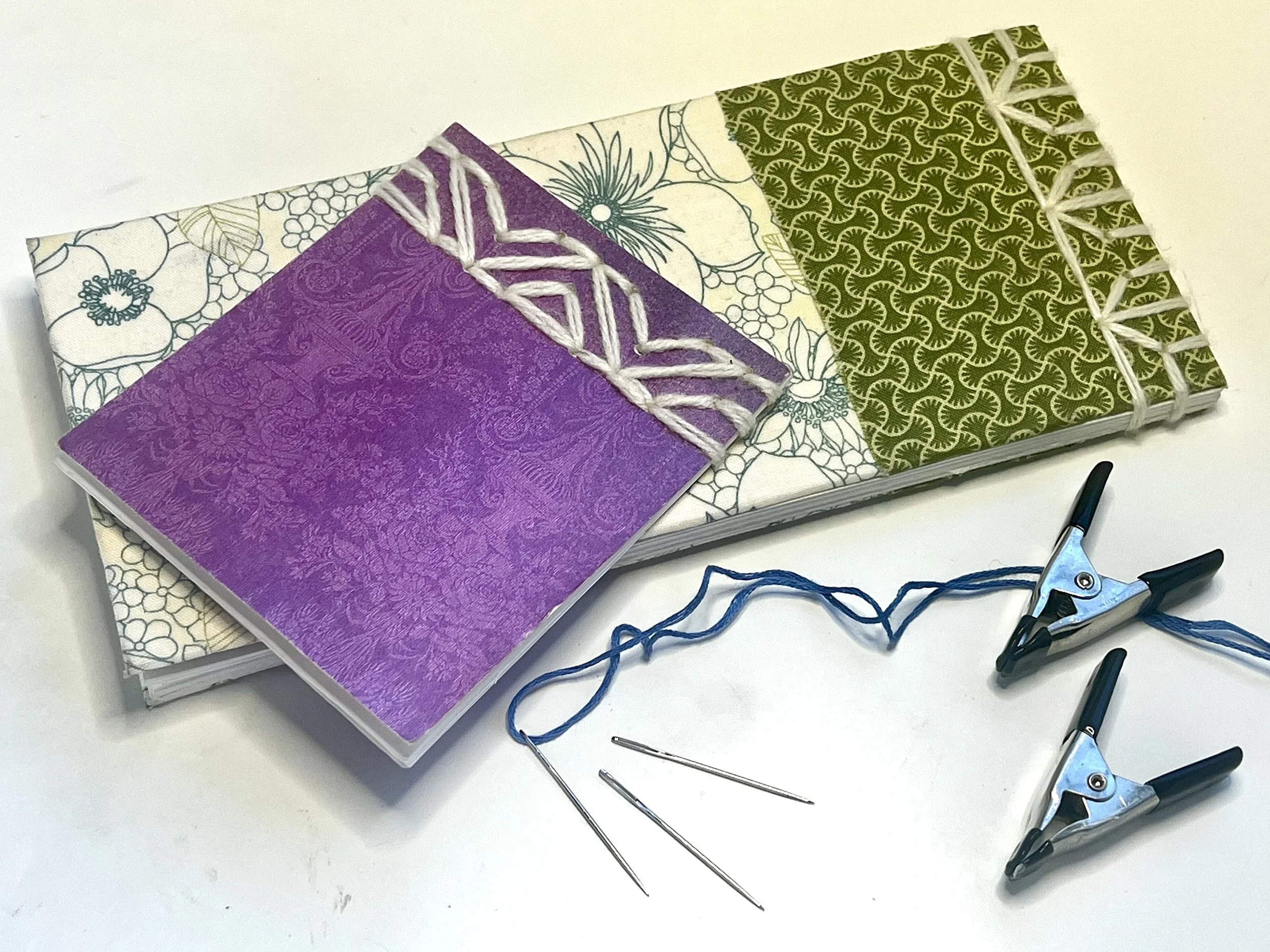 February 12, 2026, 6 - 8 pm - Japanese Stab Book Binding! Mix and match stitching, colors, and surface patterns in this hands-on bookbinding workshop.